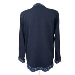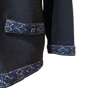 Women's Vintage Embellished Sweater Jacket Size Med Black Blue