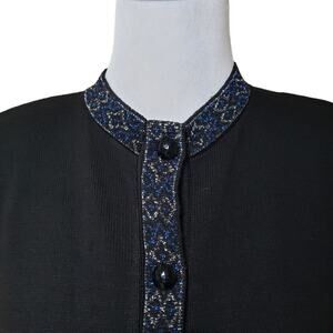 Vintage Sweater Jacket Metallic Blue Black Size M Faceted Buttons