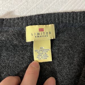 Vintage Sweater Limited America Mens XL Lambswool V Neck Classic Gray