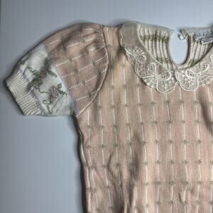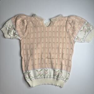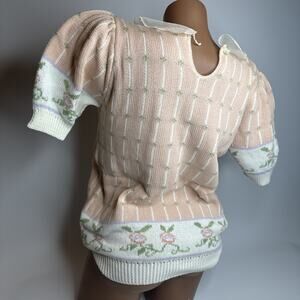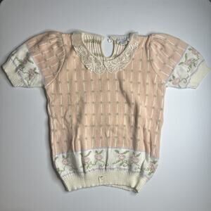 Vintage Sweater Loft Floral Pink Lace Short Sleeve Sweater L Grandma Cottage