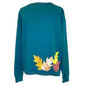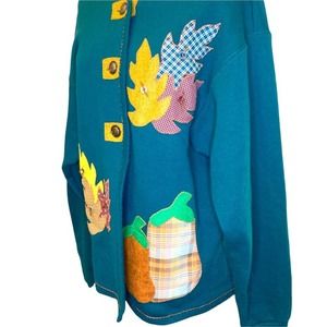 Vintage Sweater: Quilted Appliqué Autumnal Button-Up Cardigan - See Measurements