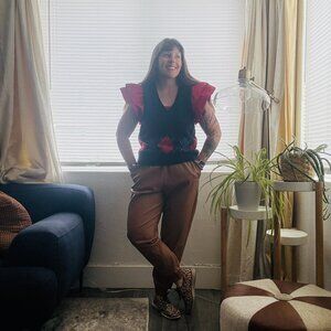 Size- Marked a vintage Petite Small. Best for a modern Petite S/M depending on your fit preferences. See measurements below.