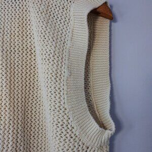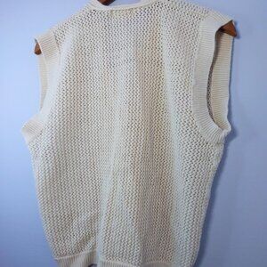 Vintage Sweater Vest Knit Cotton Cream Large Cottage Core Coastal Boho V Neck