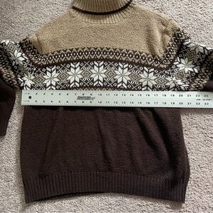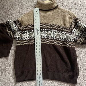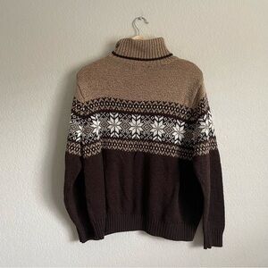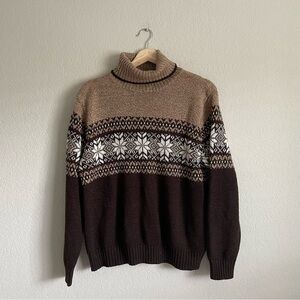 Vintage Sweater Womens Large Snowflake Turtleneck Brown Carolyn Taylor Knitted
