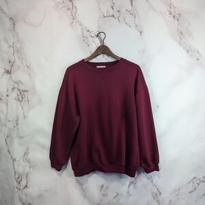 Vintage Sweatshirt Women Size Large Petite Maroon Red Cotton Crew Neck Dad 90s