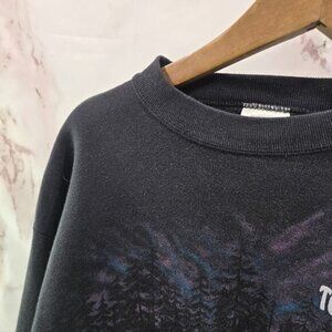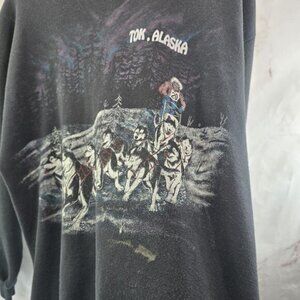 Vintage Sweatshirt Womens Large Black Husky Dog Sled Tok Alaska Nature Forest