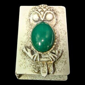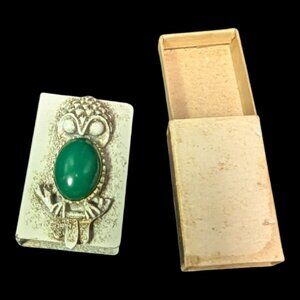 Vintage Swedish Owl Matchbox Holder With Green Gemstone Inlay Unique Collectible