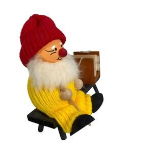 Vintage Swedish Wooden Gnome Figurine Tomte Elf Handmade Sweden Knit Hat Yellow