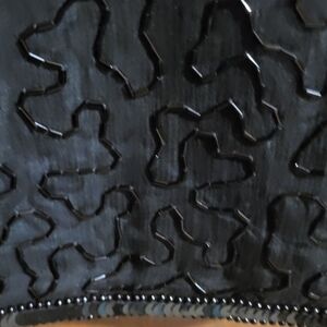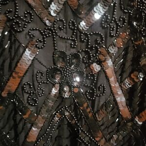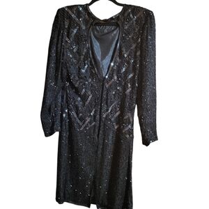 Vintage Sweelo Black Long Sleeve Open Back Silk Sequin Dress.
