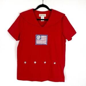 Vintage Sweet Jessie Womens Top Sailor Collar V-Neck Flag Fourth of July XL