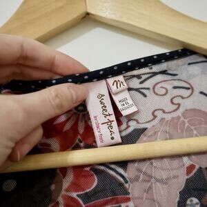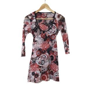 Vintage Sweet Pea Pink Floral Mesh Babydoll Tunic Top S/M 90s y2k