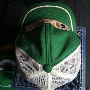 Vintage Swingster Wood Products Credit Union Patch Snap Trucker Hat Cap - Made in USA - OSFA Snap Adjustable - Excellent Condition, No Flaws - Green Color Hat
