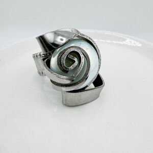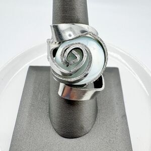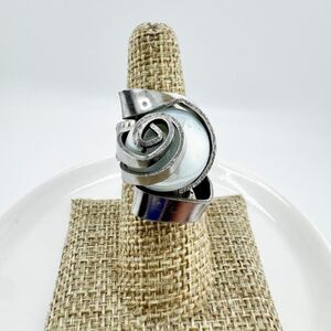 Vintage Swirl Fork Ring Iridescent Stone Handmade Unique Artisan Statement