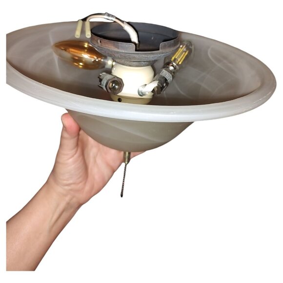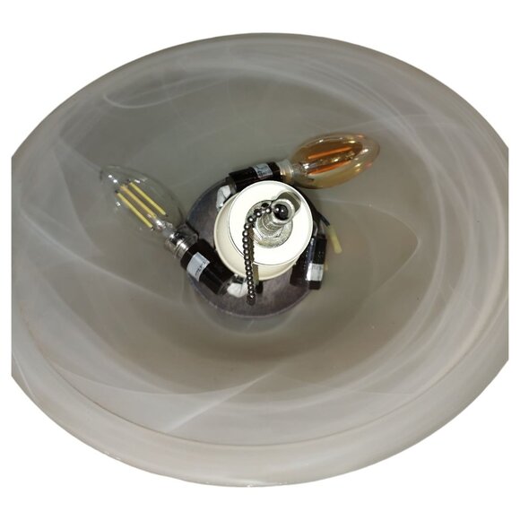 Once upon a time, this elegant ceiling light fixture adorned a cozy living room, casting a warm, inviting glow. Made with swirled glass, it brings a touch of vintage charm to any space. Imagine the stories it could tell from years of illuminating countless family gatherings and quiet moments.