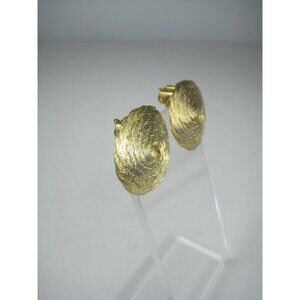 Vintage Swirled Textured Gold Tone Clip On Earrings Round Medallion Byzantine