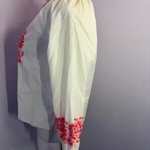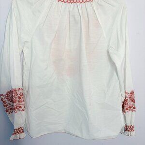 Beautiful Vintage Embroidered Blouse from Switzerland by Tramo , with bright orange thread; tie at neck