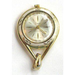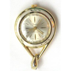 Vintage Swiss Sheffield Wind Up Necklace Pendant Watch Goldtone With White