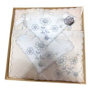 Vintage Swiss Style Orlana Embroidered Linen Handkerchief Set Elegant Gift Box