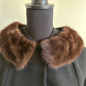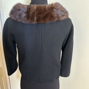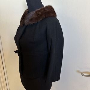 Vintage Switzers 50s Mink Fur Collar Cropped Black Jacket With Bow Small