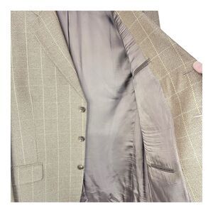 Vintage Syd Jerome Joseph Abboud Silk Wool Taupe Check Blazer Sport Jacket 42R