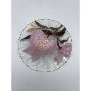 Vintage Sydenstricker Fused Glass Pink Flower Trinket Dish Bowl