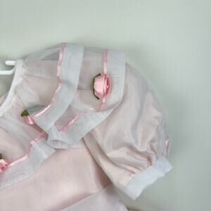 Vintage Sylvia Whyte Pink Party Dress. Girls size 6. Stunning light pink special occasion dress. Features several layers for a nice full skirt. Sheer ruffle collar with flowers. Zipper and sash to tie a big bow in the back. Has some assorted untreated marks/minor wear to the sheer tulle layer (see last 4 photos). Perfect for Easter, a birthday party, or summer wedding!