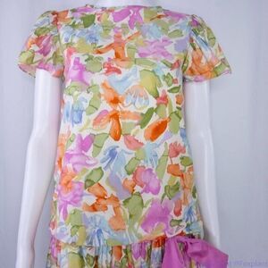 Vintage multicolor floral print drop waist dress by Sylvia Whyte for Saks Fifth Avenue, size 14 (may be Juniors)