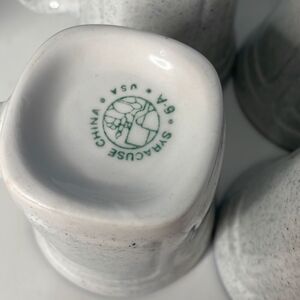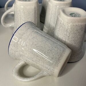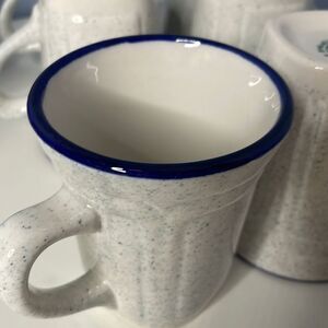 This is a set of 6 Vintage Syracuse China Coffee Tea mugs in excellent condition! The pattern is Kings Inn and feature a speckled outside and a cobalt blue rim. Set of 6