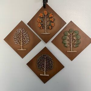 Vintage Syracuse Ornamental Co 4 Season Tree Wall Art Faux Wood Mid Century