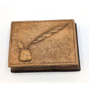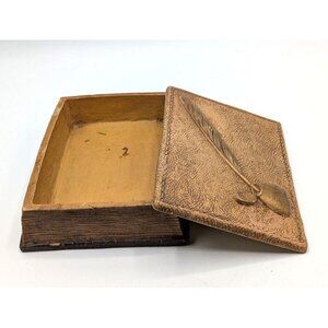 Vintage Syroco Wood Desk Box with Embossed Inkwell Faux Book 5" x 7" x 1.5"