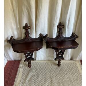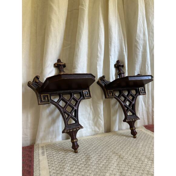 Vintage Syroco Wood Shelves oriental chinoiserie pagoda Asian style Chinese