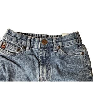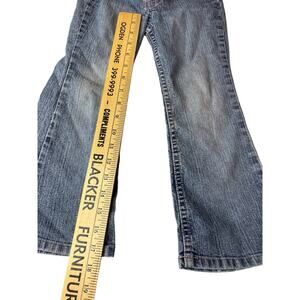 These jeans feature a button and zipper closure, five-pocket design, and belt loops. They are a size 5, with a regular fit and low-rise waist. Machine washable cold, these jeans are a great addition to any vintage collection.