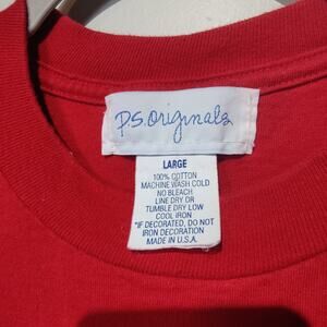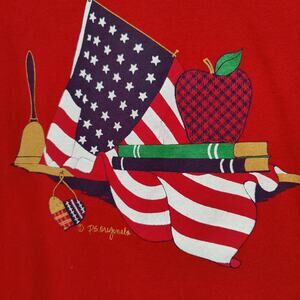 Vintage Sz L P.S. Originals Red Teacher Short Sleeve T Shirt Apple Flag Bell