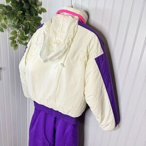 Vintage Sz M 10/12 Purple White Ski Suit Jacket Overall Pants 80s St John’s Bay