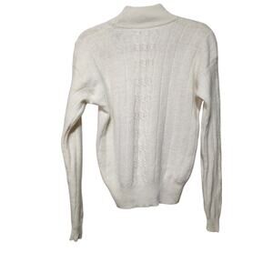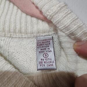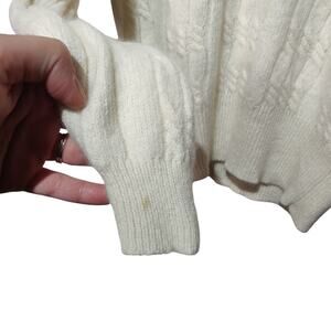 Vintage Sz S Cream Thick Cable Knit Fisherman Sweater Angora Rabbit Lambswool