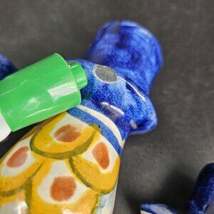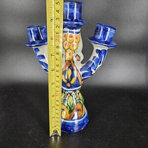 Vintage T. Ruth Mexican Talavera Pottery Candelabra 3 Arm Hand Painted Blue Yellow Art