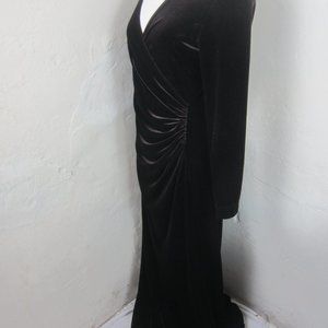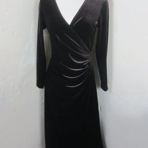 Vintage TADASHI Dark Brown Velvet Long Maxi Evening Occasion Dress Women's M