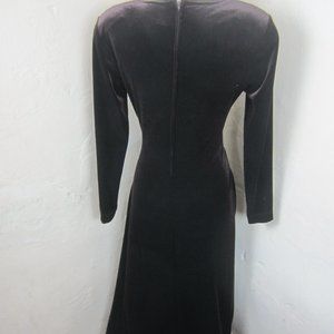Vintage TADASHI Dark Brown Velvet Long Maxi Evening Occasion Dress