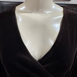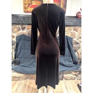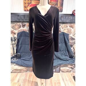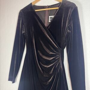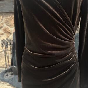 Vintage TADASHI Long Sleeve Draped Brown Velvet Dress SZ S Romantic Whimsical PS