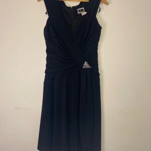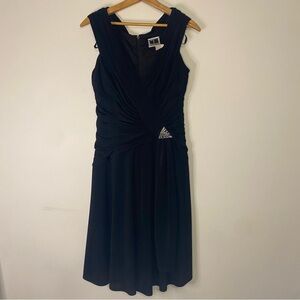 Vintage TADASHI Shoji Elegant Black V Neck Sleeveless Midi Dress Large Bridal