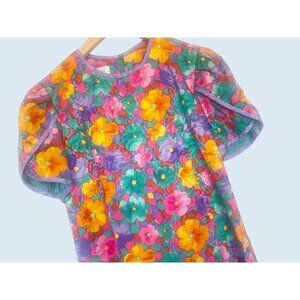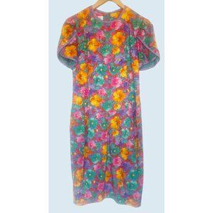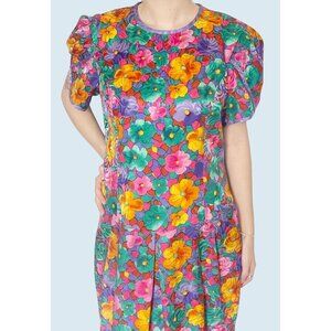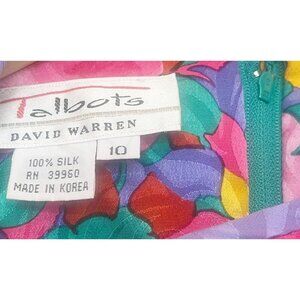 GORGEOUS vintage dress!!! Talbots by David Warren. Circa 1980s / 1990s. 100% silk. Allover bright color floral print. Zip back. Amazing cap sleeves. In really great condition!!! Tag is a vintage size 10. Listed as a size Medium based on measurements (see diagram in photos).