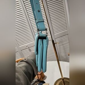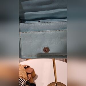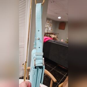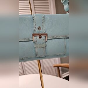 Vintage TALBOTS leather Shoulder Bag In Baby Blue/Adjustable Strap,Silver Buckle