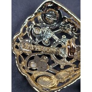 The Vintage TANCER II Signed Angel Brooch features a gold tone design adorned with red and green rhinestones, perfect for the Christmas season. This original brooch is signed by Tancer II and showcases an angel shape, making it a unique and charming piece of vintage jewelry. The use of crystal rhinestones in red and green adds a touch of elegance and sparkle to this adorable accessory, suitable for any angel-themed occasion. Bin NN A