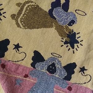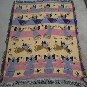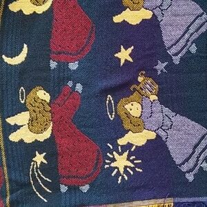 Vintage TAPESTRY Throw with fringe Christmas Angels Holiday Afghan Blanket