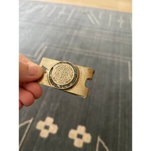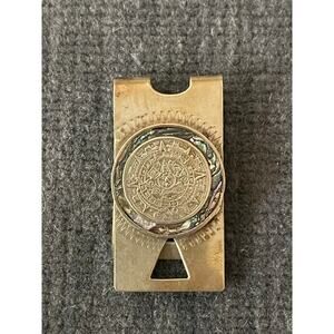 Beautiful vintage TAXCO Sterling 925 Abalone Aztec Calendar Sun Dial Money clip. Great used condition see pics.