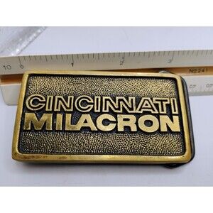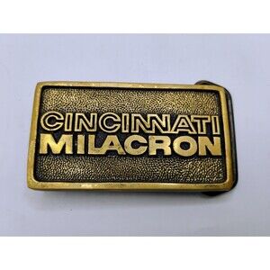 The Vintage TBW The Buckle Works Solid Heavy Brass Cincinnati Milacron belt buckle from the 1980s showcases a classic design with a touch of country-style charm. Made in the United States, this original piece is crafted from solid brass, embodying durability and authenticity. The Buckle Works brand adds a touch of nostalgia, making this belt buckle a unique accessory suitable for both men and women looking to add a vintage flair to their wardrobe. 3" long and 2" wide. See photos and if you have any questions or concerns please feel free to contact me. Thanks!