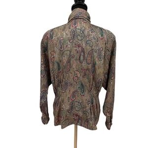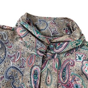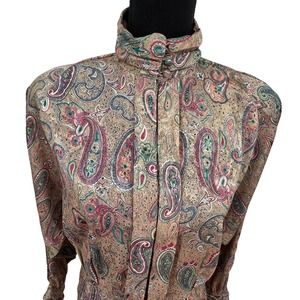 Vintage TESS Paris Milano Tan Long Sleeve Pleated Paisley Floral Blouse Sz 12