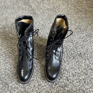Vintage TEXAS ALL AMERICAN Made Kiltie Roper Boots Black Leather Womens 6 Western Cowboy Lace Up New