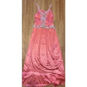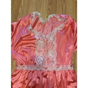 Vintage TEXSHEEN Lingerie Long Pink Chiffon Lace Lounge Gown & Robe Peignoir. Truly Beautiful looks unworn. Please look at the photos and all the detail Medium