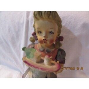 Vintage THAMES Hand Painted Girl Figurine Japan Daddy Slippers Carry a Tray